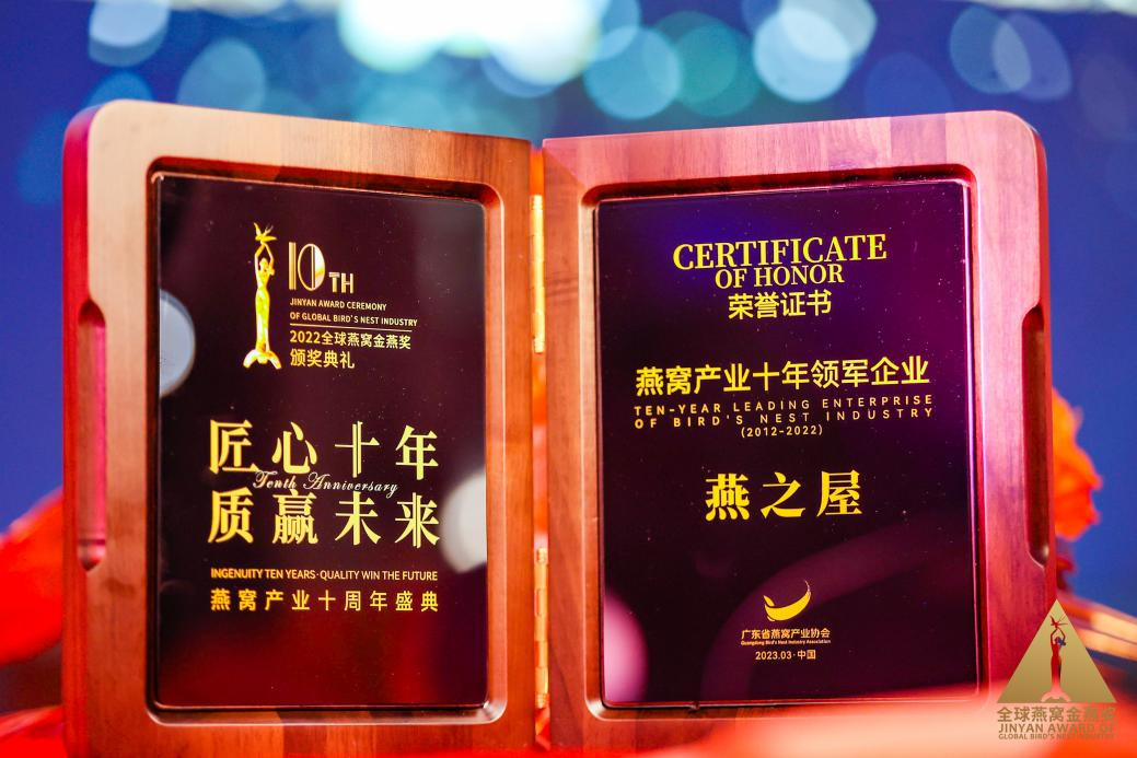 圖:燕之屋榮獲燕窩產(chǎn)業(yè)十年領(lǐng)軍企業(yè)