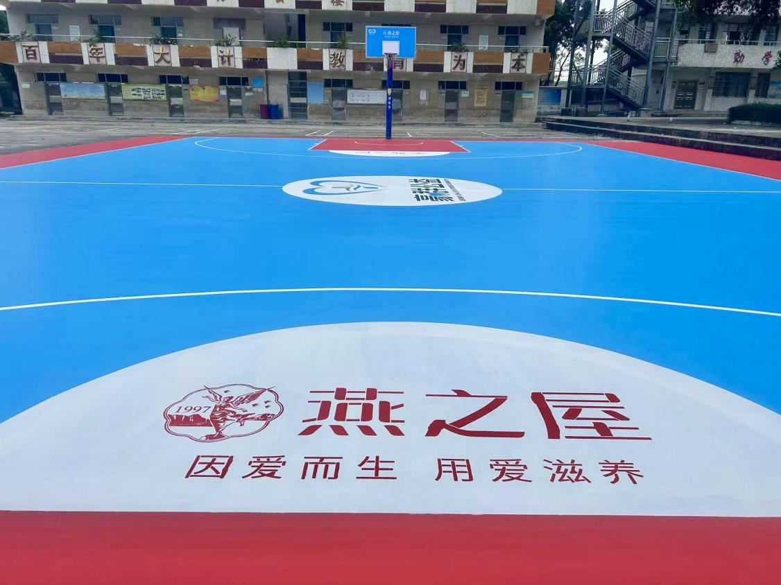 圖:燕之屋向廣東省韶關市武江區(qū)西河學校捐建的籃球場