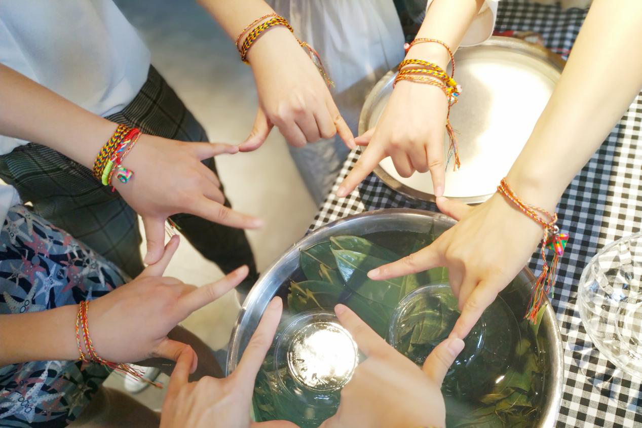 圖:燕之屋鄭州粽子DIY品鑒會(huì)嘉賓佩戴五彩繩合影