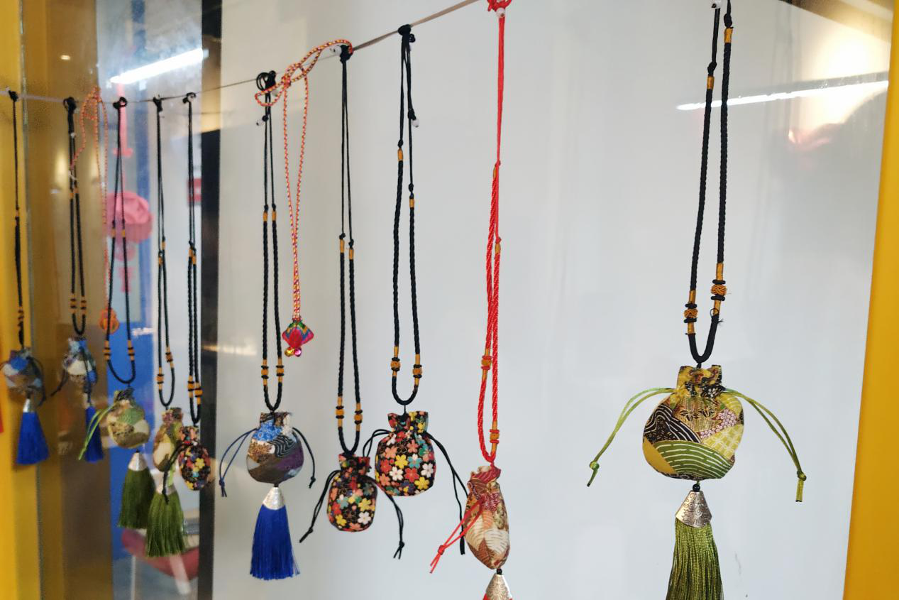 圖:燕之屋鄭州粽子DIY品鑒會(huì)現(xiàn)場(chǎng)懸掛各式各樣的香囊