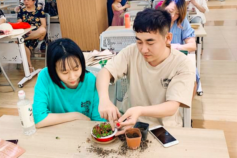 圖:燕之屋鞍山盆栽DIY主題活動現(xiàn)場嘉賓DIY盆栽