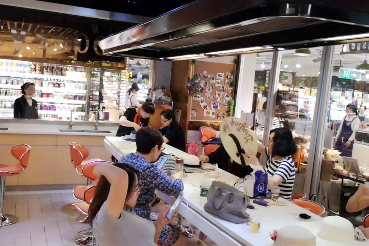 圖:燕之屋上海草帽DIY主題品鑒會(huì)嘉賓正在手作美帽