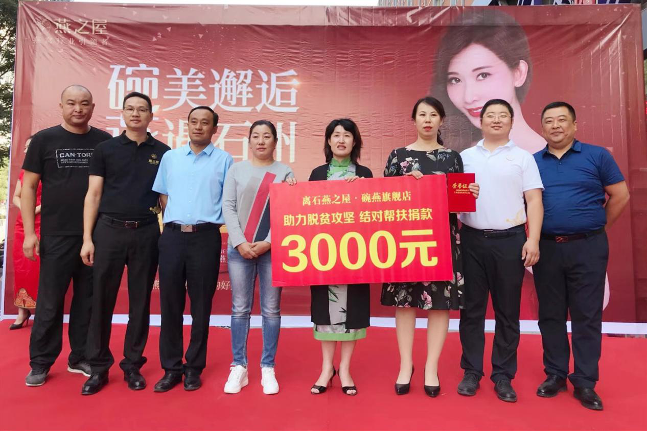 圖:燕之屋離石旗艦店開業(yè)舉辦“助力脫貧攻堅,結(jié)對幫扶捐款”活動