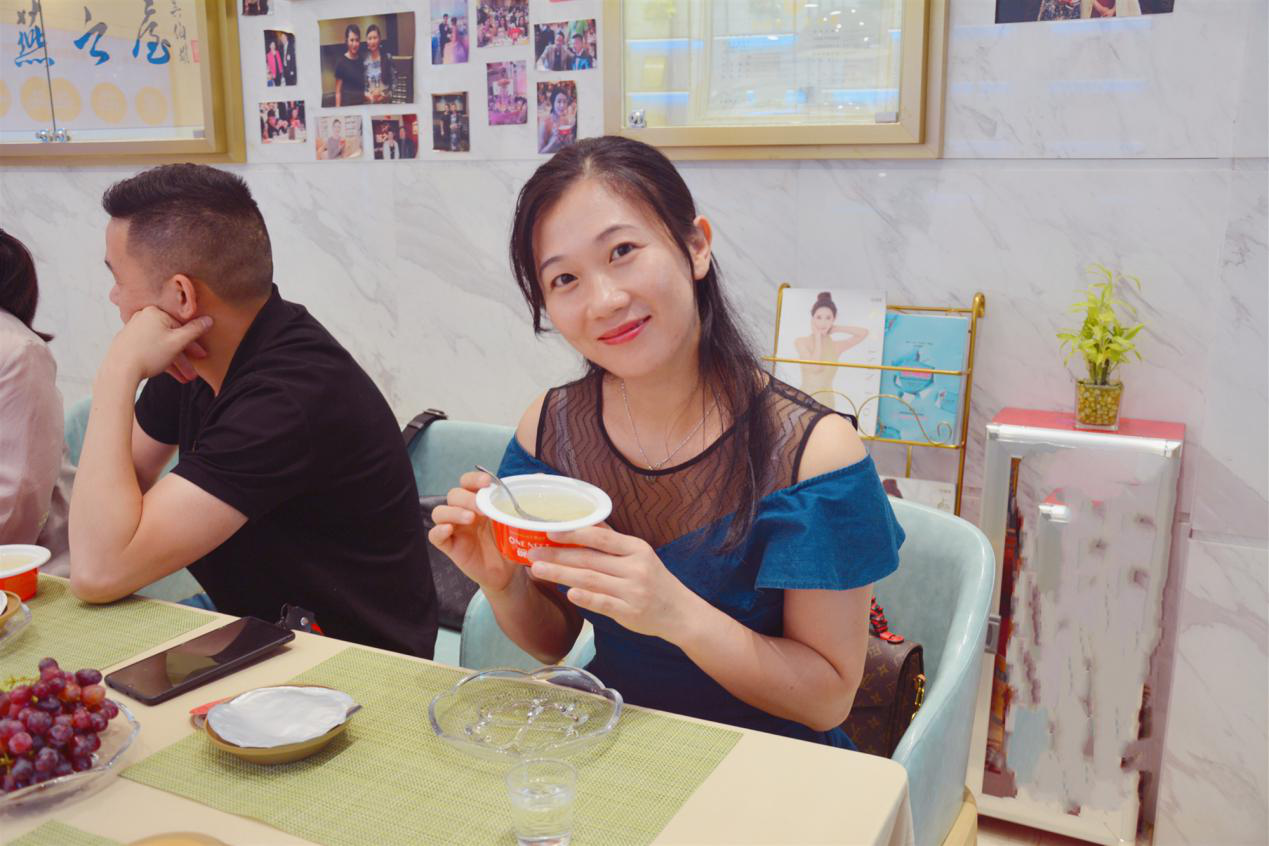圖:周小花老師手捧碗燕,展露甜美微笑