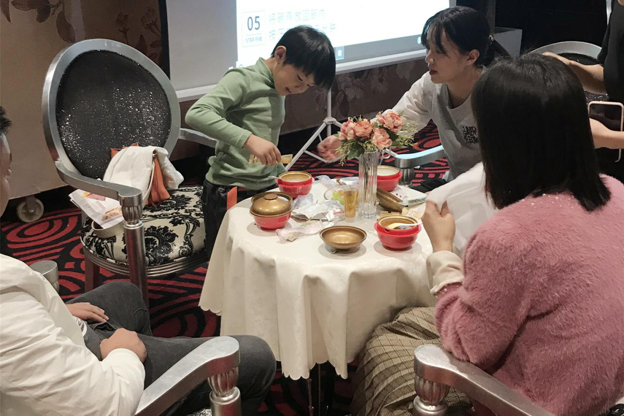 隨后迎來“重頭戲”金湯碗燕的品鑒環(huán)節(jié),客戶們將金湯料包倒入碗中攪動,等待幾分鐘的加熱之后打開,房間內(nèi)瞬間彌漫著濃濃香氣。剛將碗燕送入口中,就有客戶點頭:“金湯碗燕味道真的很棒,而且自加熱的科技也很適合冬天吃。”還有客戶豎起大拇指說:“創(chuàng)意革新,回味無窮!”還有不少客戶表示:“平時都是吃甜口味的燕窩,換成金湯碗燕這樣咸口味燕窩,搭配一下也很好。”