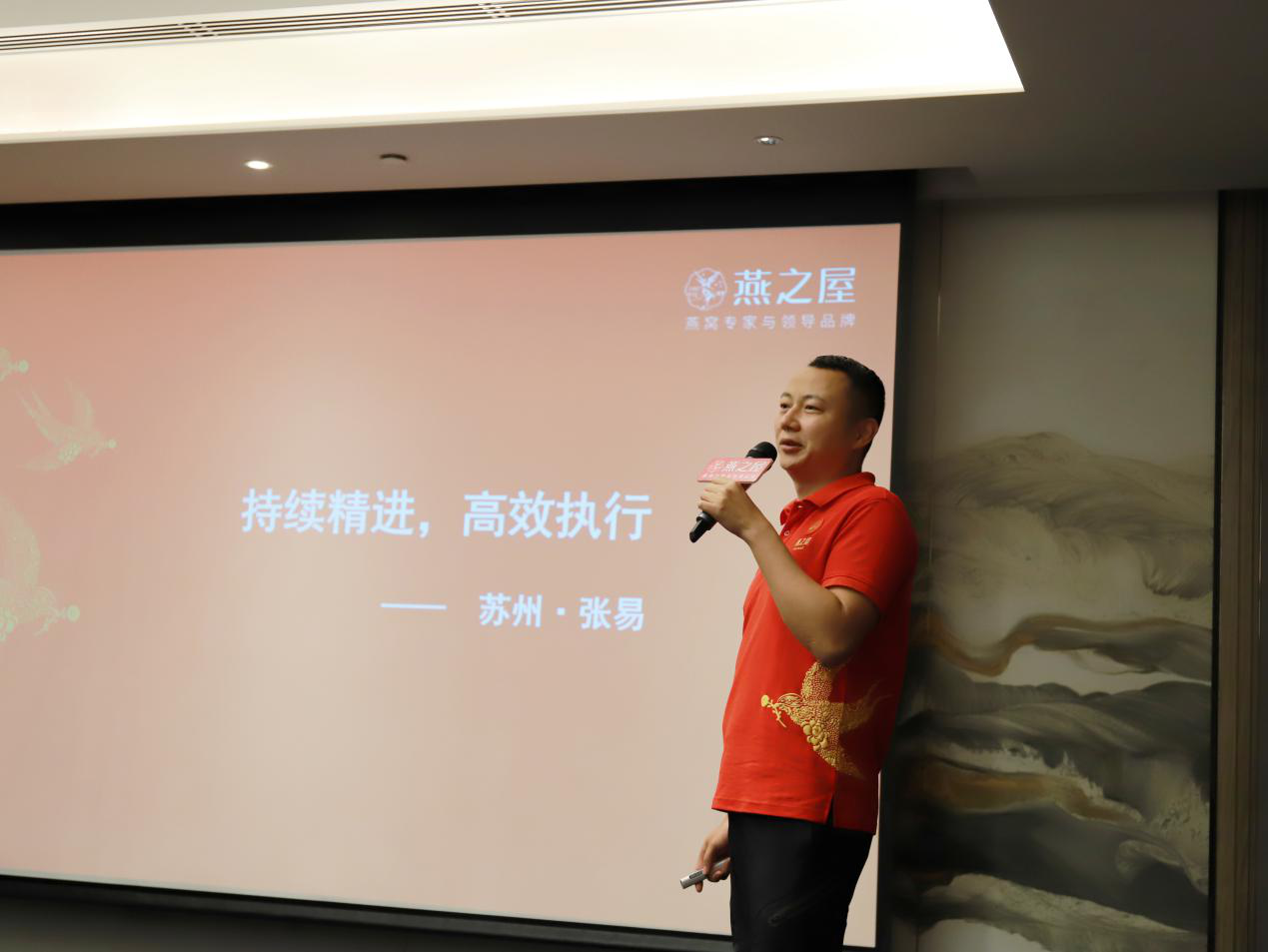 會(huì)議開始,燕之屋執(zhí)行董事兼總裁李有泉發(fā)表會(huì)議致辭。他表示: 2020年由于疫情影響,各行各業(yè)都受到較大沖擊,然而燕之屋卻突破困境逆勢(shì)增長(zhǎng),2020上半年取得了近40%的優(yōu)秀增長(zhǎng)業(yè)績(jī),這是全國(guó)燕之屋人統(tǒng)一戰(zhàn)線、協(xié)力前行、共同創(chuàng)造的成果。江浙滬市場(chǎng)現(xiàn)仍處于發(fā)展初期,具有非常巨大的市場(chǎng)潛力,今日齊聚蘇州,聽取優(yōu)秀市場(chǎng)分享成功經(jīng)驗(yàn),剖析市場(chǎng),迎接江浙滬市場(chǎng)2020下半年?duì)I銷的黃金時(shí)代。