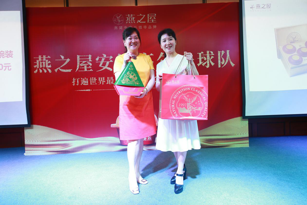 比賽當(dāng)晚,主辦方同步舉辦頒獎晚宴,為本次比賽前三名頒發(fā)燕之屋精美禮品,并向每位嘉賓贈送了一份燕之屋燕窩粽子作為端午禮品。不少女性嘉賓也通過現(xiàn)場精彩的抽獎環(huán)節(jié),收獲了燕之屋濃情款碗燕,喜出望外。當(dāng)晚宴接近尾聲,任靜也代表了合肥燕之屋向球友們送上最真摯的祝福:“祝大家身體健康,每天都充滿活力,一桿進(jìn)洞!”
