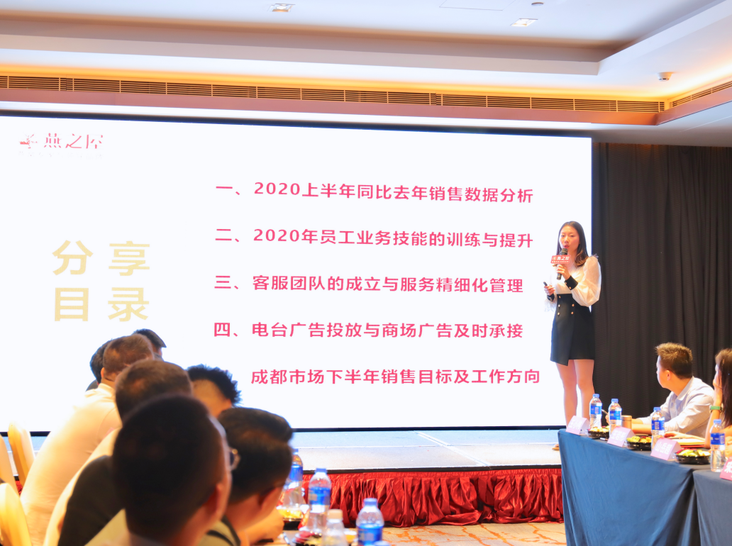 座談會中,來自不同區(qū)域市場的優(yōu)秀合作商伙伴結合自身經驗與佳績案例做出了精彩的分享。燕之屋成都市場在不斷的總結中成長,全方面工作聚焦,夯實基礎,成立客服團隊與服務精細化管理,逆勢增長;燕之屋銀川市場完善布局雙店齊開,資源有效整合;燕之屋玉溪市場全力發(fā)動圈層的力量,多形式組合,靈活巧用傳播資源,逆勢硬核增長;燕之屋西寧市場緊跟總部步伐,全力推動市場各項活動政策,完善體系管理。各市場暢談經驗,歸納提煉當?shù)厥袌鲞\營能力的方法和策略,具有極大的借鑒及指導意義。