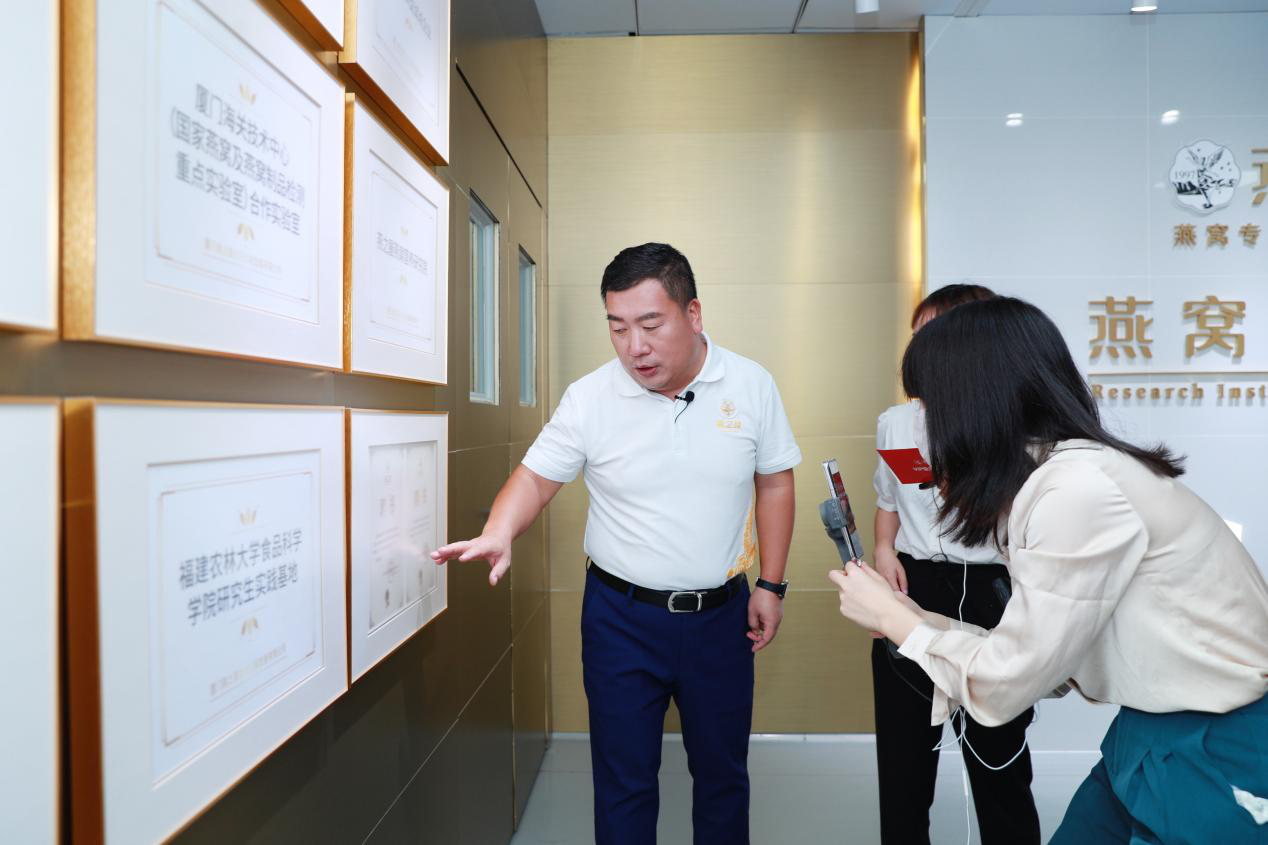 圖:燕之屋執(zhí)行董事兼總裁李有泉(右)介紹燕之屋生產(chǎn)四大工序