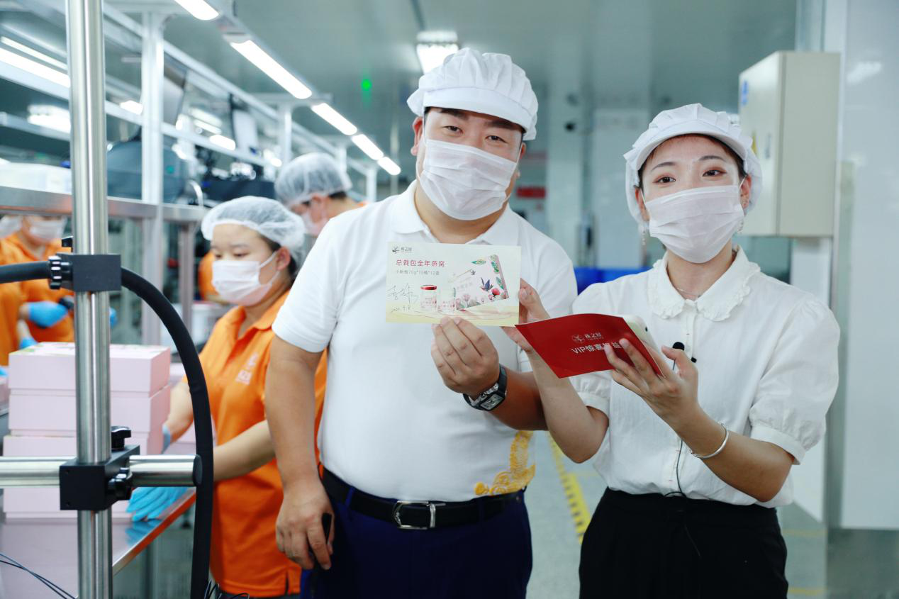 燕之屋打包車間有“產(chǎn)品不落地”的品控點,因為產(chǎn)品掉落時的撞擊可能會影響產(chǎn)品的品質(zhì),比如條狀破壞等,正是這份細(xì)致入微的品質(zhì)把控,才鑄就了燕之屋“吃燕窩,就選燕之屋”的品牌聲量。最后,李有泉還親自打包產(chǎn)品,隨機(jī)選中一位幸運兒送出燕之屋小粉瓶燕窩年卡的大福利!