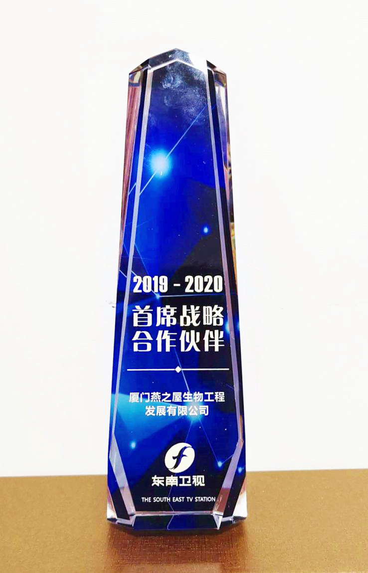 圖:燕之屋獲東南衛(wèi)視“2019-2020首席戰(zhàn)略合作伙伴”稱號(hào)