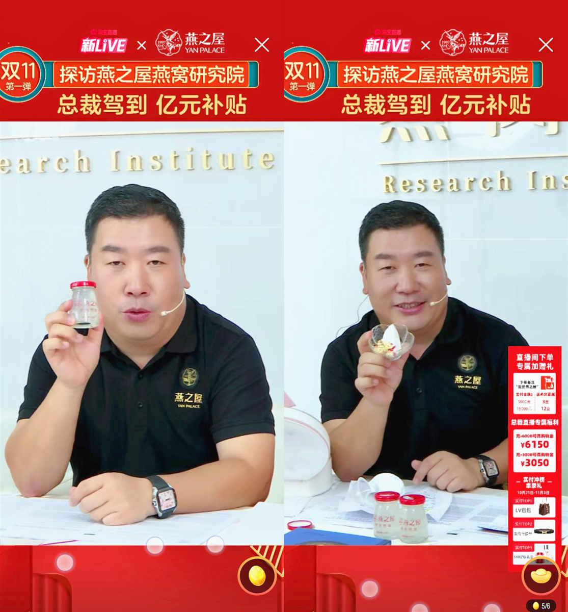 本次直播,李有泉親自上陣,為燕之屋產(chǎn)品實(shí)力背書(shū),希望有越來(lái)越多的消費(fèi)者可以挑選到適合自己的、心儀的好燕窩,逐步擁有健康好身體,向著健康的未來(lái)持續(xù)進(jìn)發(fā)!燕之屋發(fā)力天貓雙11健康滋補(bǔ)市場(chǎng),發(fā)起雙11預(yù)售億元補(bǔ)貼、沖榜拿好禮、跨店滿減、雙11購(gòu)物金等優(yōu)惠活動(dòng),為消費(fèi)者提供價(jià)格親民、好吃不貴的品質(zhì)燕窩!