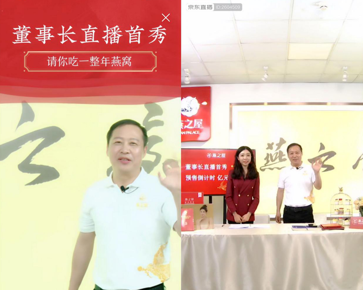 圖:燕之屋創(chuàng)始人、董事長黃健開啟天貓京東雙平臺(tái)直播首秀