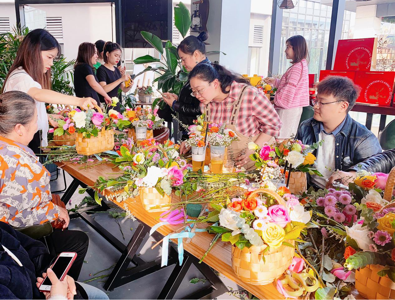 圖:客戶們熱情參與插花活動(dòng)