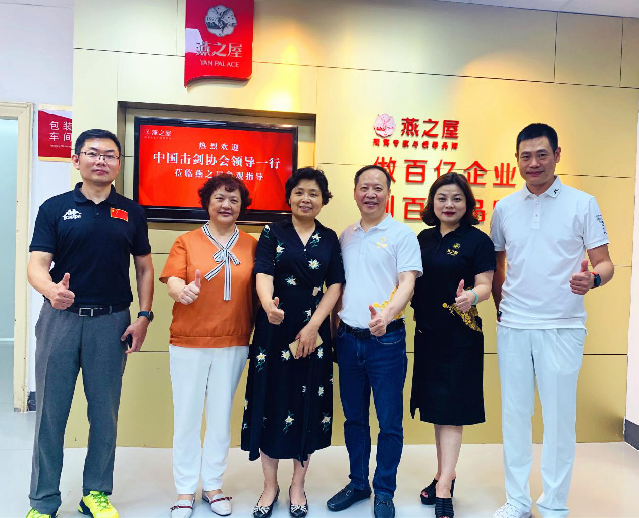 圖:中國國家擊劍隊(duì)運(yùn)動(dòng)員參觀燕之屋工廠