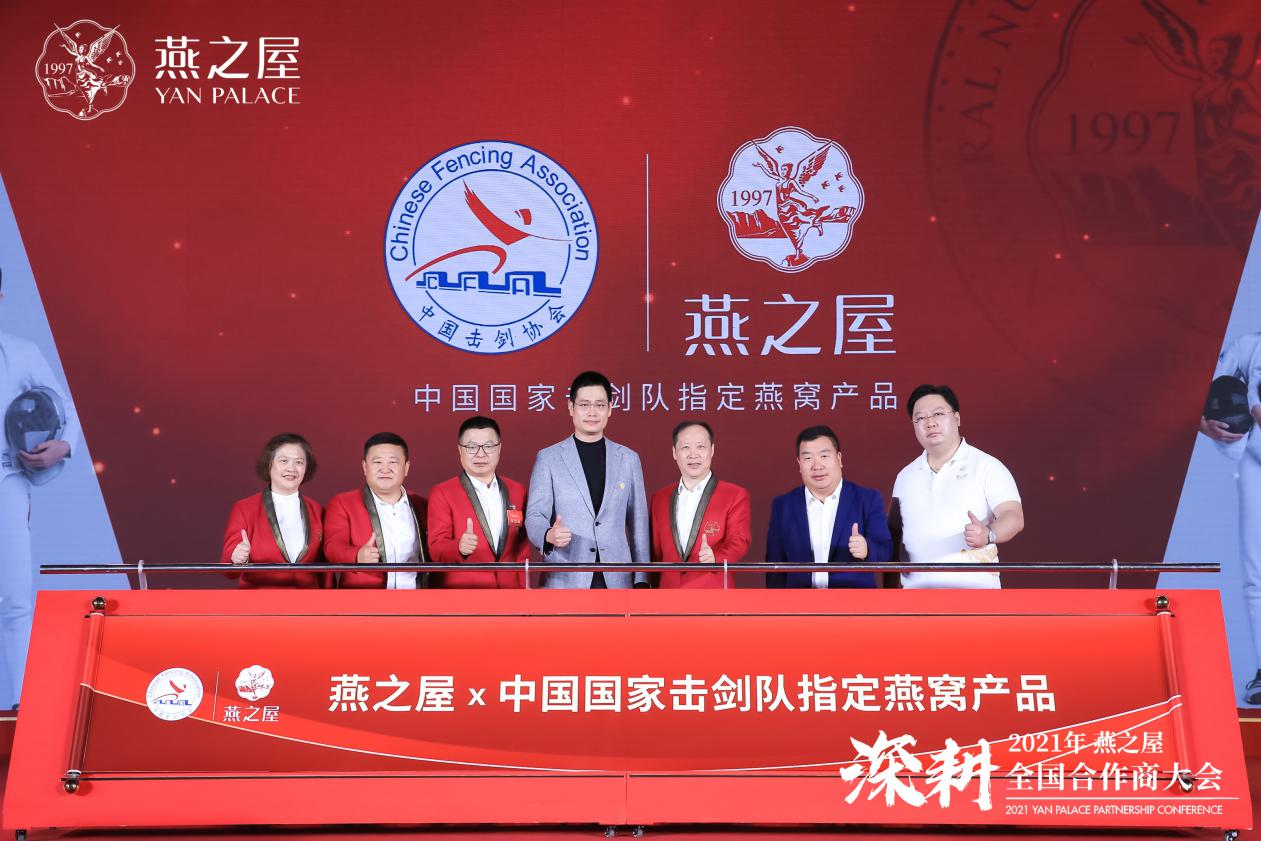 3月26日,燕之屋召開“深耕”2021年燕之屋全國合作商大會(huì),并在會(huì)上正式發(fā)布與中國國家擊劍隊(duì)聯(lián)名IP,由中國國家擊劍隊(duì)代表王盟攜手燕之屋領(lǐng)導(dǎo)們共同揮桿,啟動(dòng)發(fā)布。