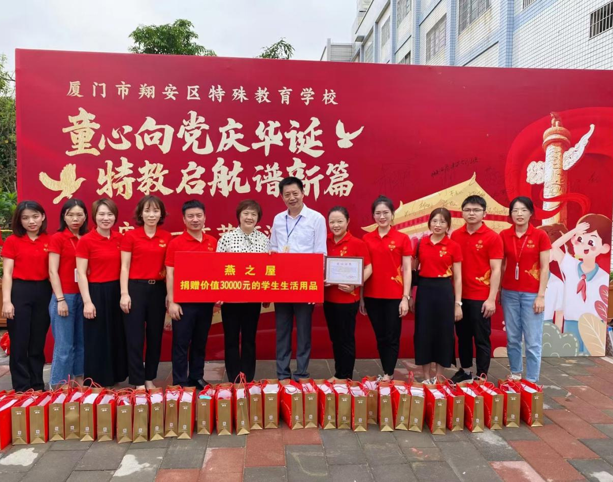 圖:燕之屋向廈門市翔安區(qū)特殊教育學校捐贈生活用品獲“愛心證書”