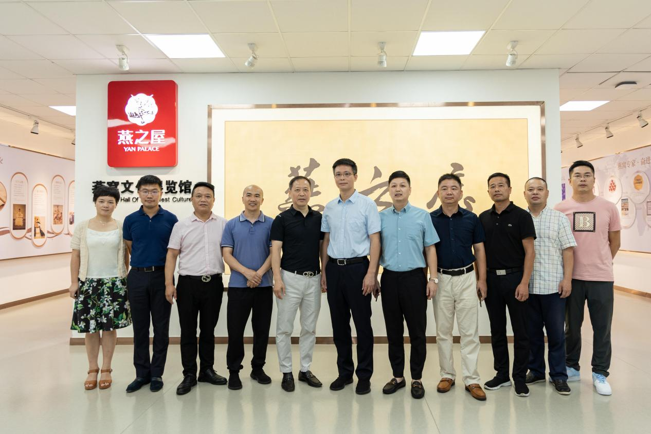 圖:寧德市柘榮縣縣委書記張曉容一行與燕之屋創(chuàng)始人、董事長(zhǎng)黃健先生(左五)合影