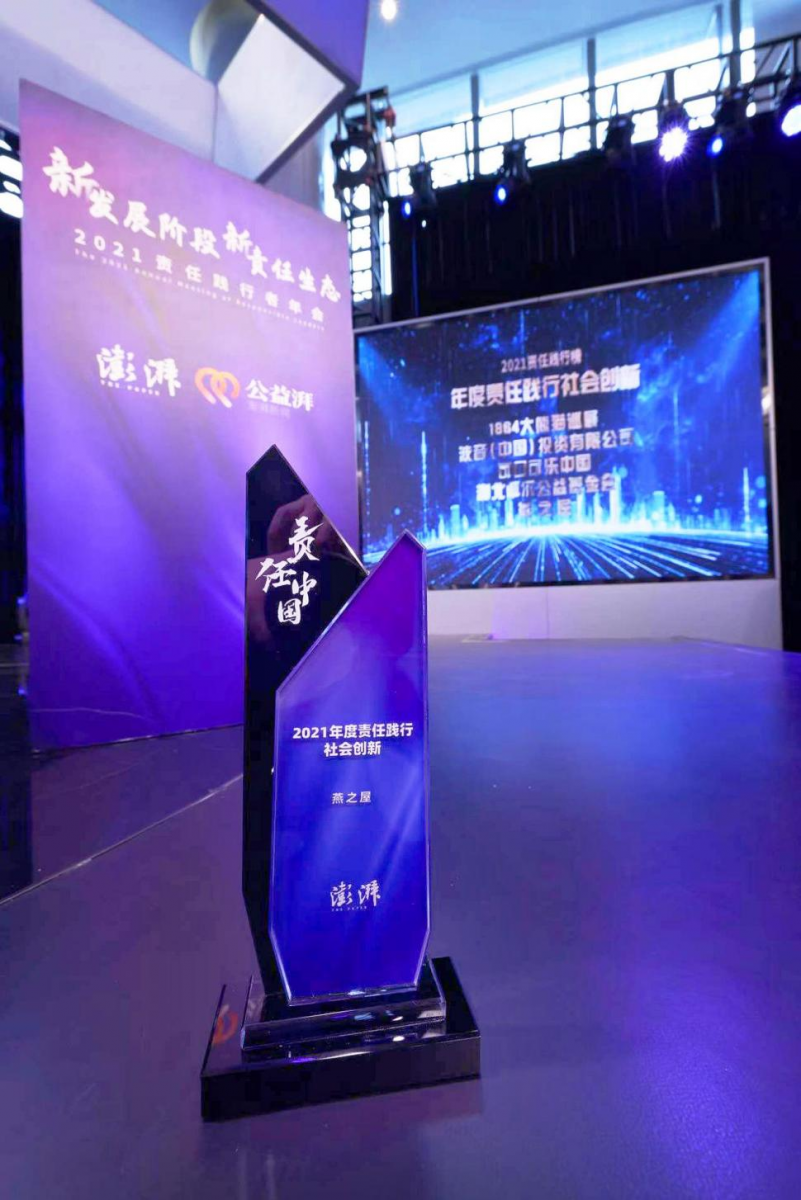 圖:燕之屋榮獲澎湃新聞“2021年度責(zé)任踐行社會(huì)創(chuàng)新”獎(jiǎng)項(xiàng)