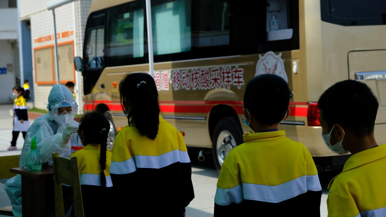 圖:燕之屋移動核酸采樣車支援廈門市集美區(qū)安仁小學(xué)
