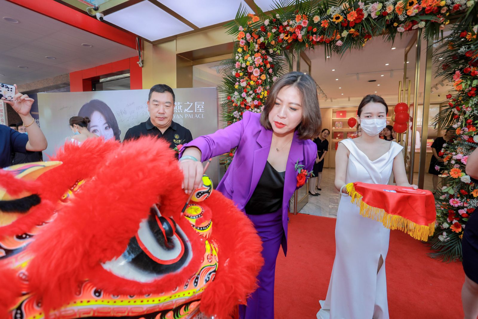 擂鼓陣陣雄獅舞、花籃錦簇喜氣洋,開業(yè)儀式以“鼓樂激昂,雄壯威武”的醒獅表演開篇,為開業(yè)祝福添彩。緊接著,燕之屋相關(guān)領(lǐng)導為雄獅點睛,一點左眼,生意興隆,二點右眼,財源廣進,邀八方來客共赴一場美好生活的約定。
