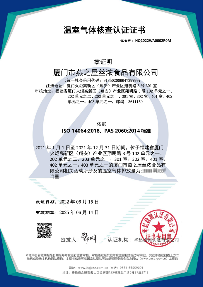 近日,燕之屋榮獲“產(chǎn)品碳足跡認(rèn)證證書”與“溫室氣體核查認(rèn)證證書”,這標(biāo)志著燕之屋在踐行 “碳達(dá)峰、碳中和”目標(biāo)上邁出了實質(zhì)性一步。