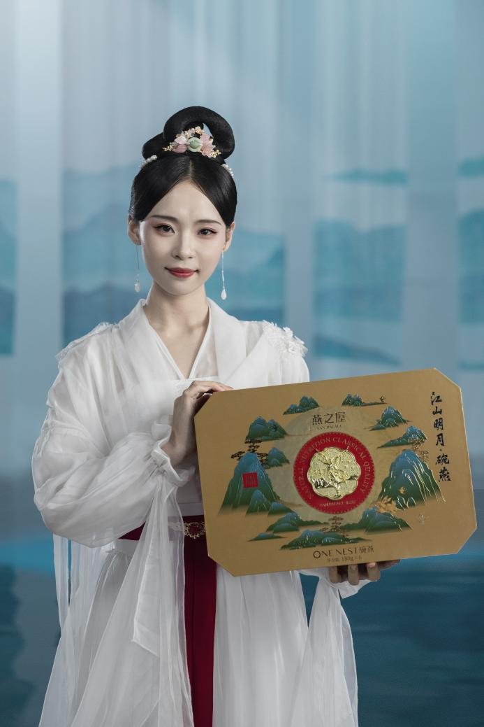 千年一夢,宋風雅韻。國風大片「江山明月」靈感取自燕之屋·江山明月·碗燕禮盒,禮盒同樣延續(xù)了千年宋代美學。燕之屋·江山明月·碗燕禮盒以形為載體,取北宋王希孟創(chuàng)作的《千里江山圖》為創(chuàng)意靈感,禮盒之上印有江山、明月、祥云、金燕、玉兔等傳統(tǒng)元素;禮盒中的碗燕·尊享款碗身同樣印有江山明月的花紋,整體秉承宋代極簡主義美學,貼合青綠山水畫風格,成就一份山河國風禮,向大眾傳遞雋永的文化內(nèi)涵和美學價值。