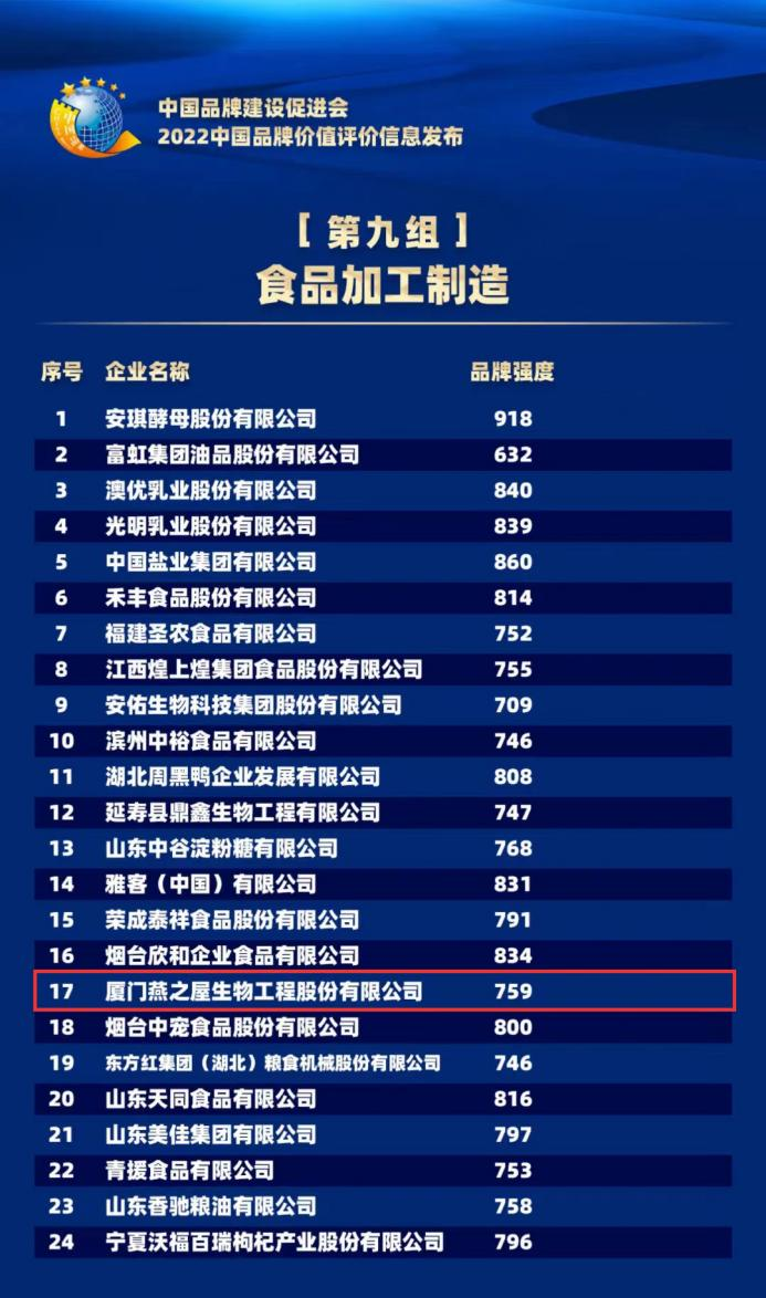 圖:燕之屋成為唯一榮登2022中國(guó)品牌價(jià)值評(píng)價(jià)信息發(fā)布榜的燕窩品牌