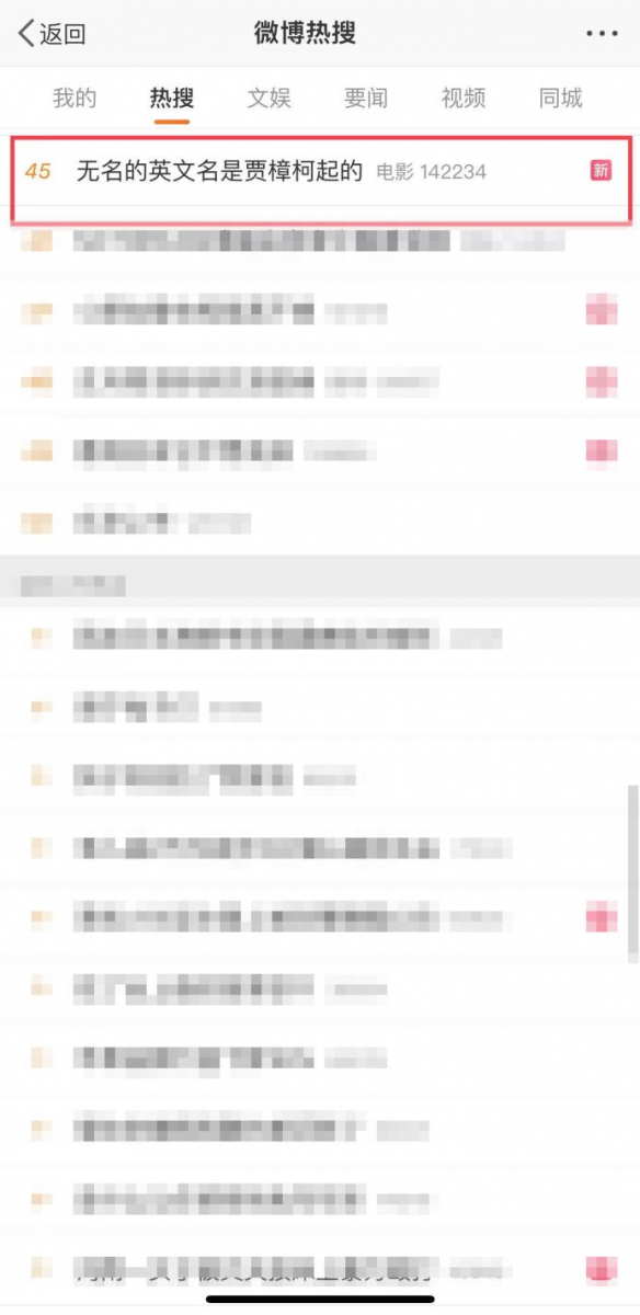 圖:話題#無(wú)名的英文名是賈樟柯起的#登上微博熱搜